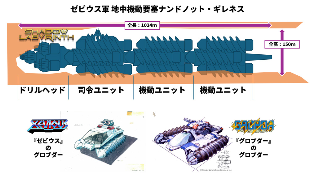 本要塞のデザインモチーフは『ゼビウス』のグロブダーと『グロブダー』の自機である。