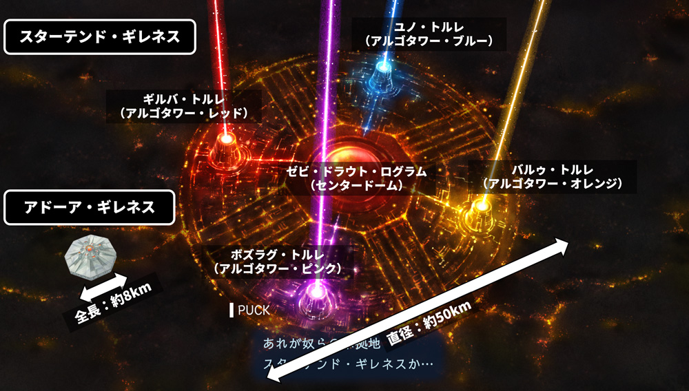 ゲーム中のマップでは簡略化されて描写されているが、設定上は直径約50kmにも及ぶ。