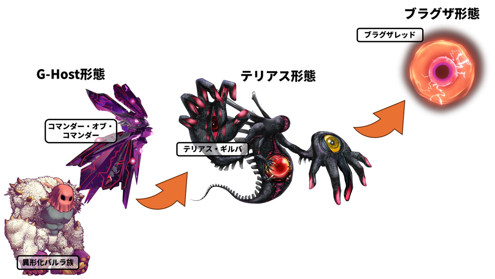 ブラグザレッドはこれまでG-Host、つまりアドーア・ギレネス、ガル・アドーア・ギレネス、異形化バルラ族、そしてコマンダー・オブ・コマンダーといった宿主の圧倒的な能力に依存しすぎており、純粋に個体としては遥かに脆弱であった。