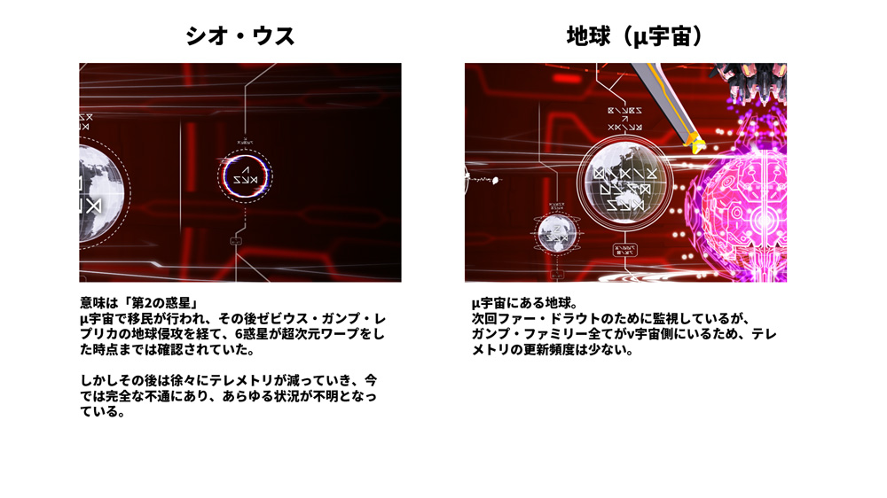 しかしすでに数万年を経て、各々のガンプ・レプリカは個性を確立し、それが相容れない関係を持ってくると、次第に相互の生存情報を監視、確認するテレメトリ情報にとどまってきている。