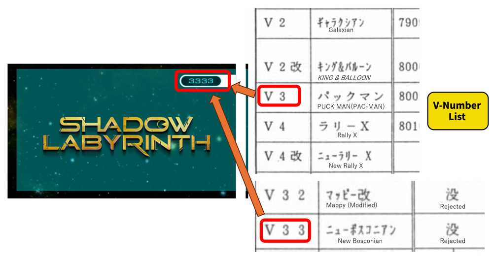 ※開発コード番号:通称「Vナンバー(VはVideo Gameの頭文字)」。ナムコでアーケードゲーム開発時に振られていた番号。V-0の『ジービー(Gee Bee)』から始まる。