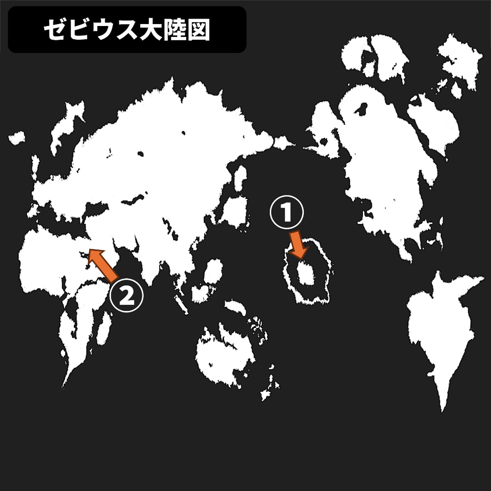 過去のゼビウス関連作品である、『スーパーアドベンチャーゲーム・ゼビウス(1985年・東京創元社)』での舞台は②の部分がそれぞれ舞台となる。