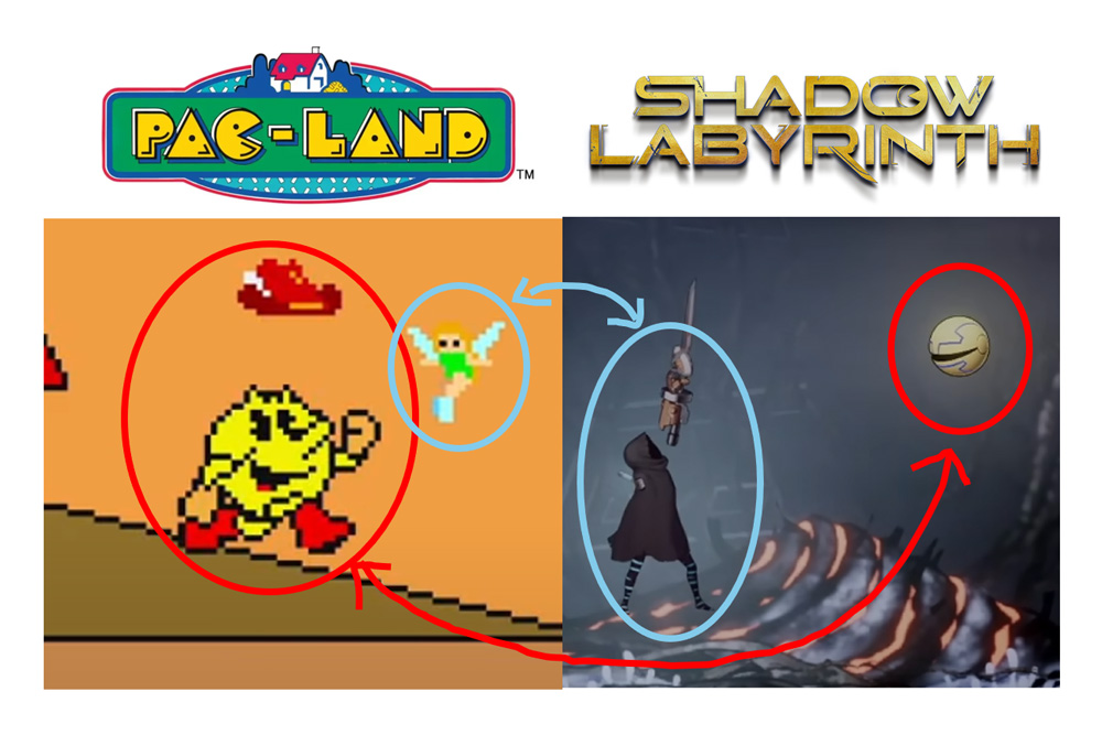 『Shadow Labyrinth』の主人公「8番目」とPUCKの関係性は、実は『パックランド』におけるパックマンと妖精の関係性を元に、それを反転させている。