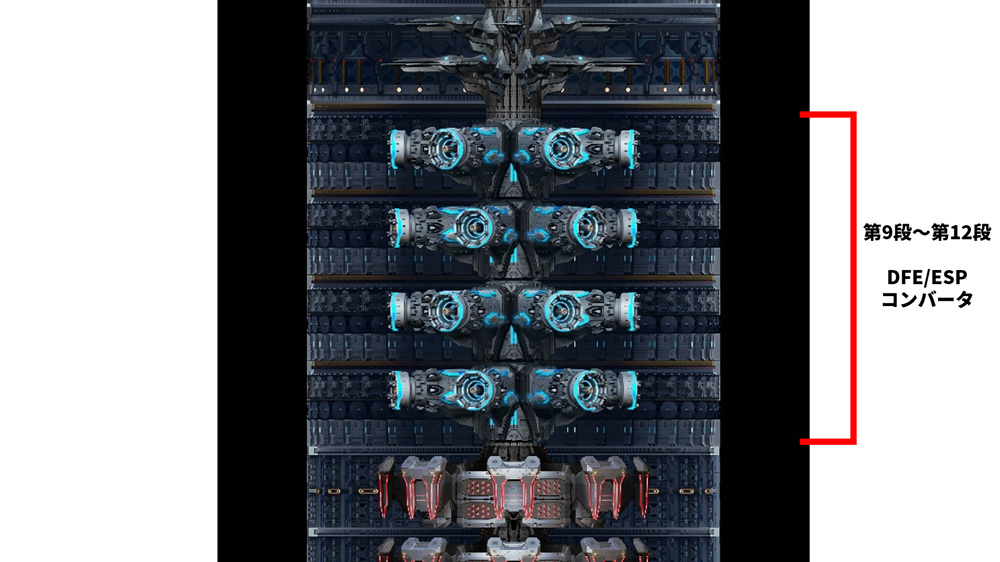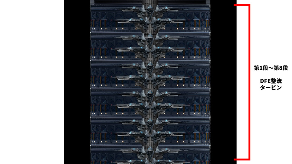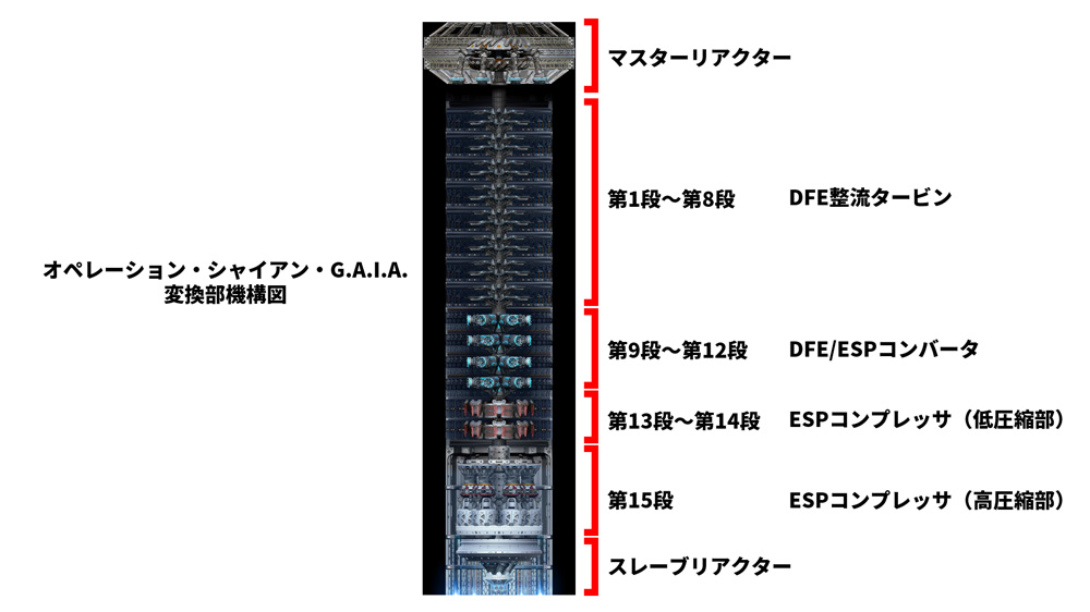 マスターリアクターの発生させたDFエネルギーは散漫かつ脈動が大きくそのままでは利用できないため、第1~第8段でエネルギーの整流を行い、DFエネルギーを1点に集約する。