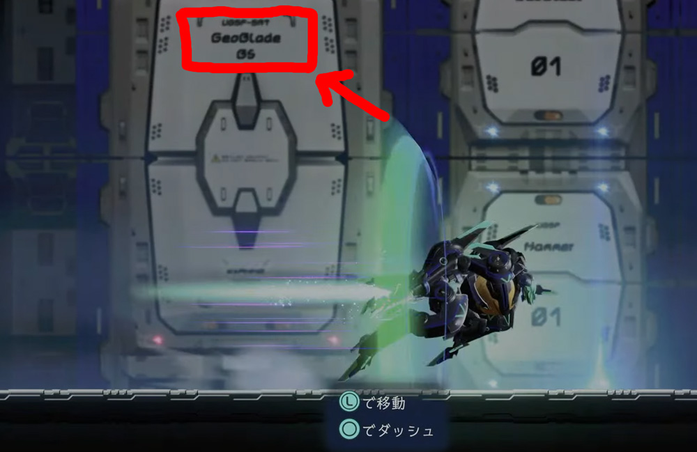 ゲーム開始直後のGAIAが出撃するシーンの背後にある、一際大きい”UGSF-SAT GeoBlade B5”と書かれた格納庫を覚えているだろうか?