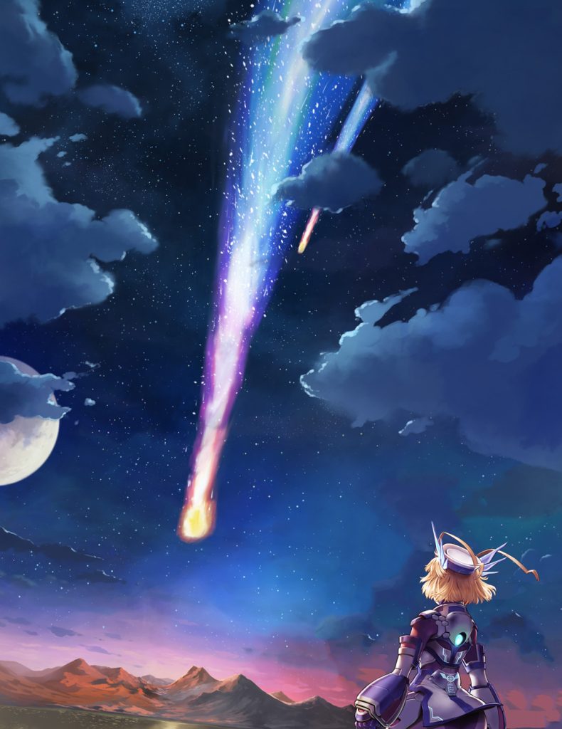ゲーム中、火球が落ちてくるシーンで、先行する大きい火球は特務戦艦ブルーグースであり、その後ろの小さな火球がGeoBlade B5である。