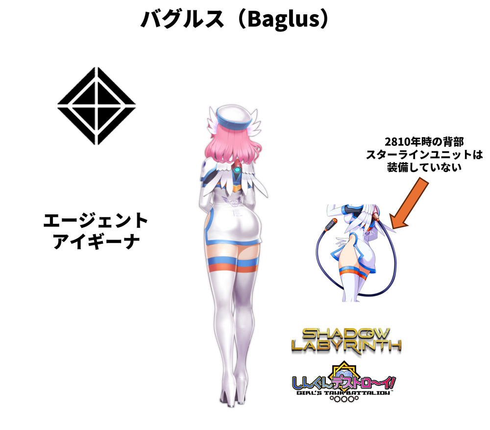 『Shadow Labyrinth』内に登場する反“真の敵”組織「バグルス」のエージェントの一人「アイギーナ」について説明する。