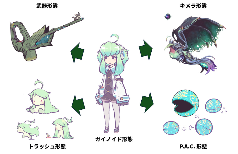 キメラ化(エンテレケイア)したトラッシュはPUCKと主人公「8番目」撃破された後、PUCKによってナノバイト・マテリアルのプログラムが修正された。